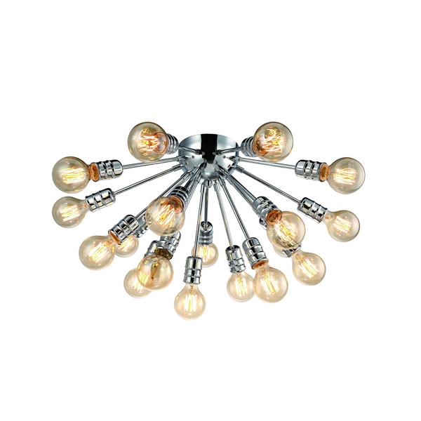 Потолочная люстра Fuoco A9265PL-18CC — модель от итальянской фабрики Artelamp. Основа люстры выполнена из металла цвета цвета хрома. Люстра будет хорошо смотреться в кафе, кухне, предпочтительный стиль дизайна — лофт, индустриальный. Цоколь — E27 с максимальной мощностью лампочки 60 Вт. Общая площадь освещения составляет 54 кв. м. Высота модели — 33 см, диаметр — 60 см. Люстра имеет 18 лампочек и плафонов и крепится на монтажную пластину. Есть возможность подключения диммера. Степень защиты от влаги и пыли — IP20. Закажите потолочную люстру A9265PL-18CC по лучшей цене с быстрой доставкой на Wikisvet.ru!