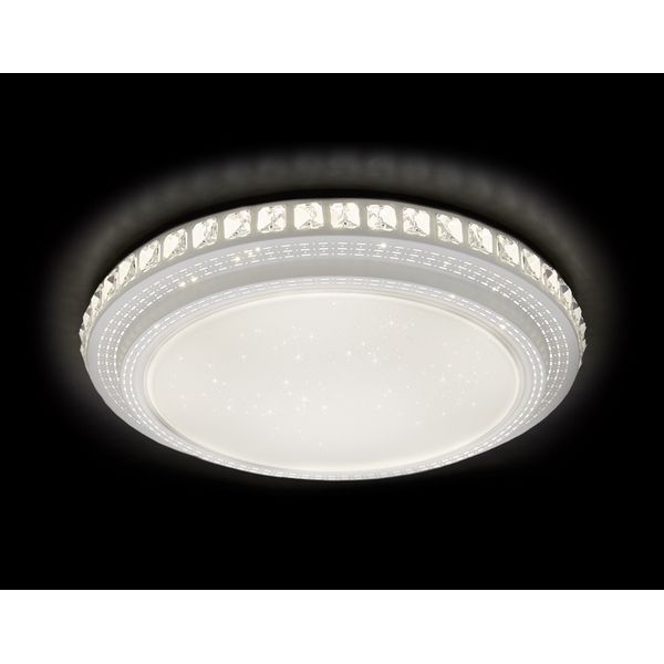 Потолочный светильник Orbital Crystal F92 104W D600 — модель от российской фабрики Ambrella. Светильник подходит для размещения в гостиной, спальне, предпочтительный стиль дизайна — модерн. Основа выполнена из металла белого цвета, плафон из акрила, пластика белого, прозрачного цвета. Светильник имеет 1 плафон и 1 лампочку, цоколь — LED с максимальной мощностью лампочки 104 Вт. Общая площадь освещения составляет 21 кв. м. Модель крепится на монтажную пластину. Модель светодиодная, с пультом. Степень защиты от влаги и пыли — IP20. Закажите потолочный светильник F92 104W D600 по лучшей цене с быстрой доставкой на Wikisvet.ru!